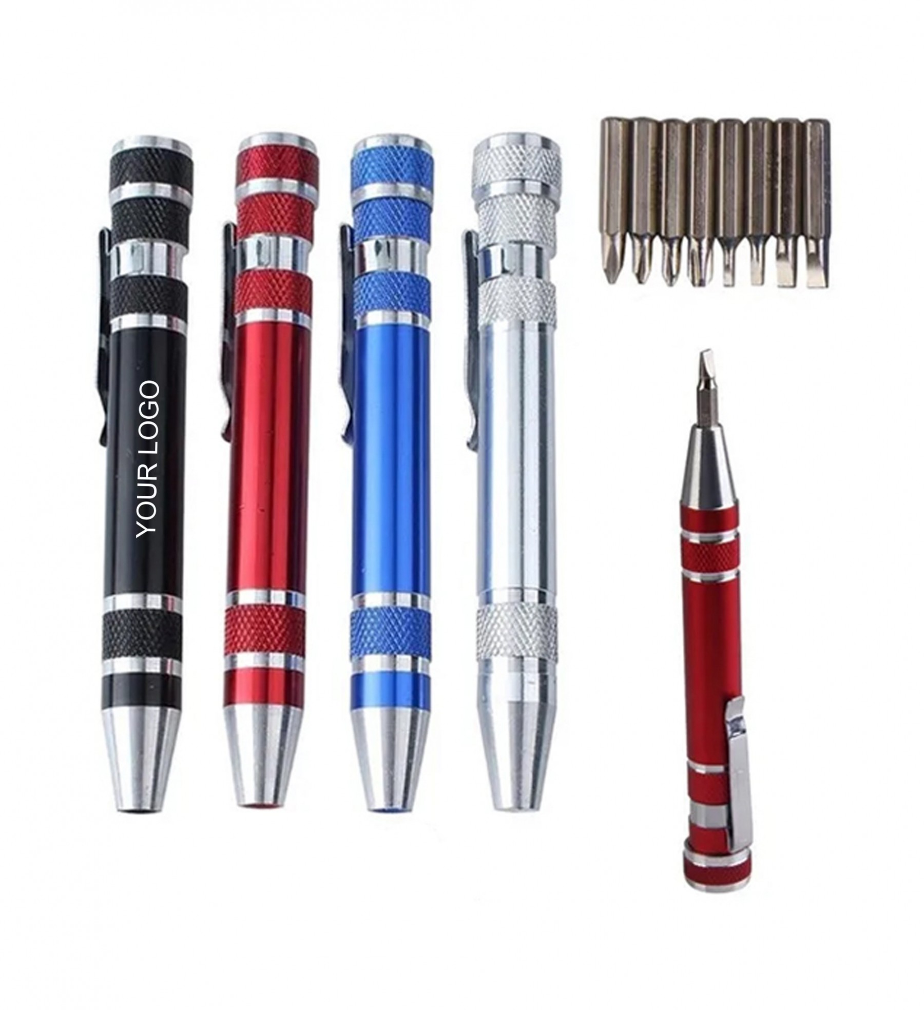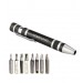 This screwdriver set includes 8 different screwdrivers in one mini aluminum body. Perfect for on-the-go repairs, the compact design fits easily in your pocket.
